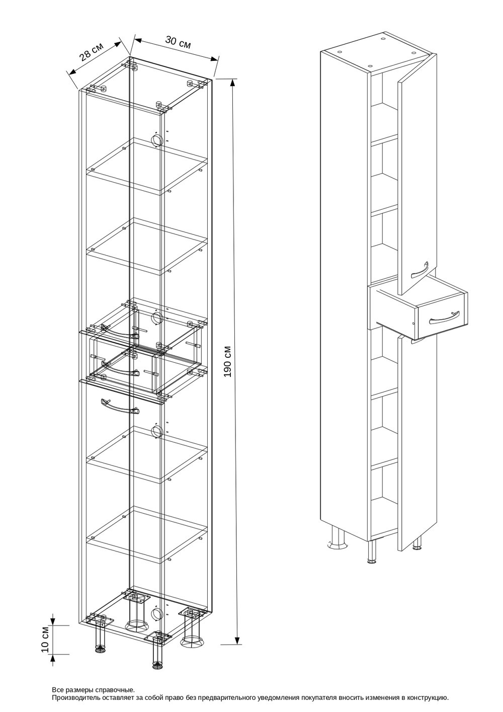 Пенал напольный EvaGold ТМ EG010302 300х1900х280 мм, цвет белый.