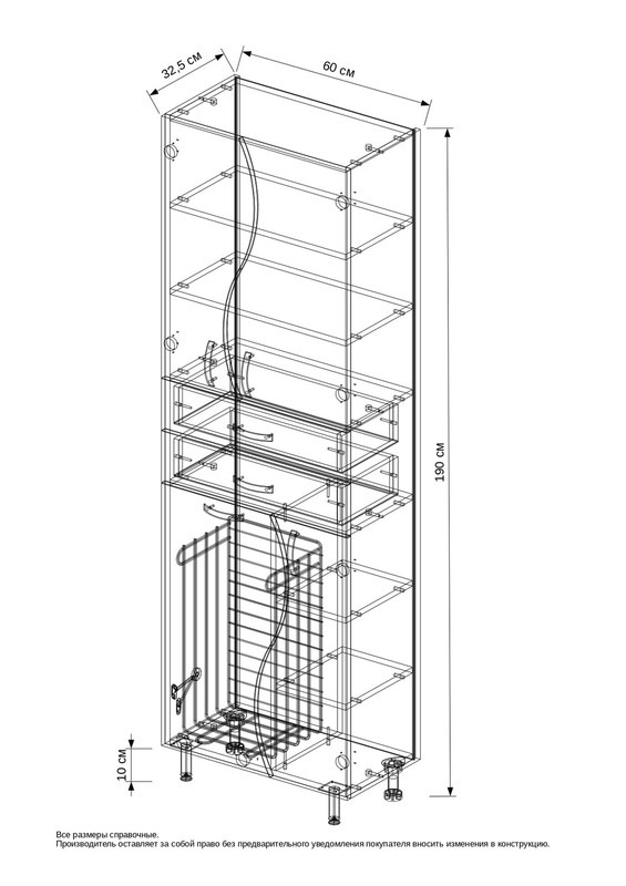 Пенал напольный EvaGold ТМ 600х1900х325 мм, с бельевой корзиной и ножками, цвет белый.