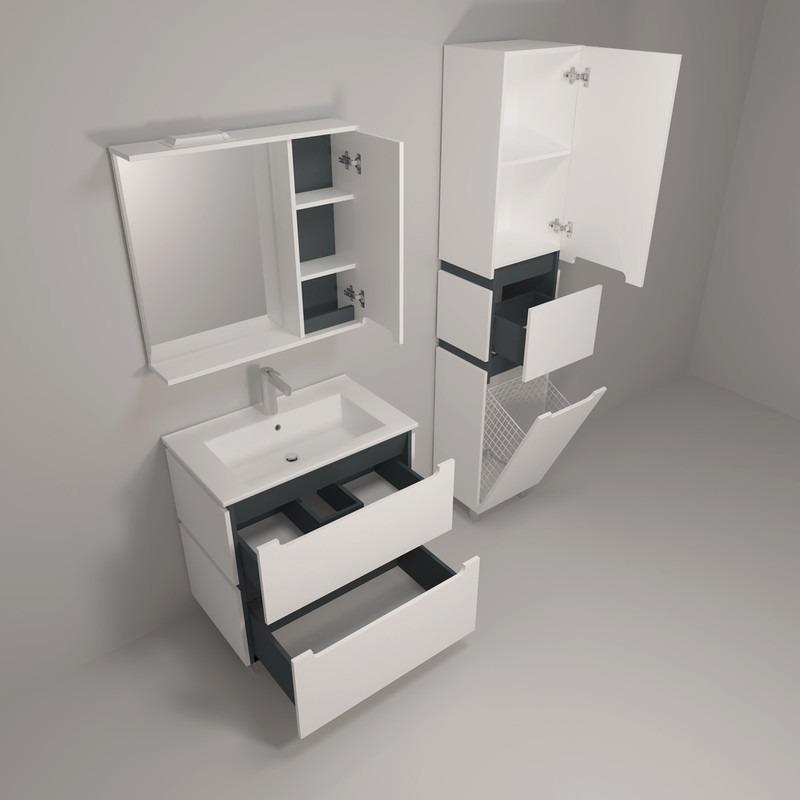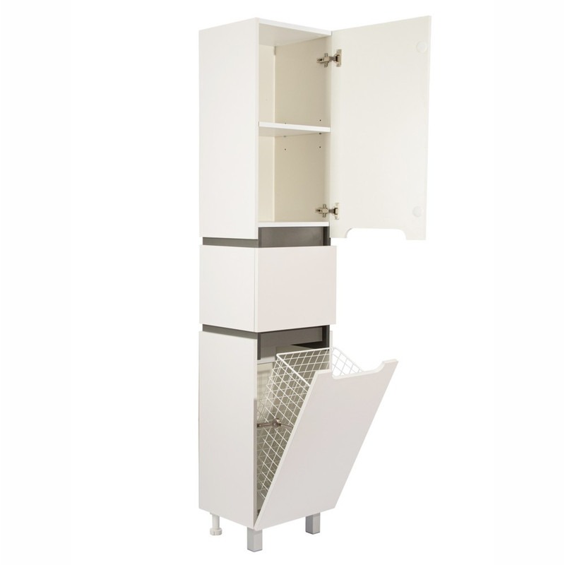Пенал напольный EvaGold Vesta EG010420 400х1900х335 мм, с бельевой корзиной и ножками, цвет белый/графит.