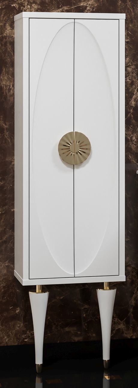 Пенал напольный Smile Ибица 45 см, ножки из массива бука, цвет белый глянец/золото.