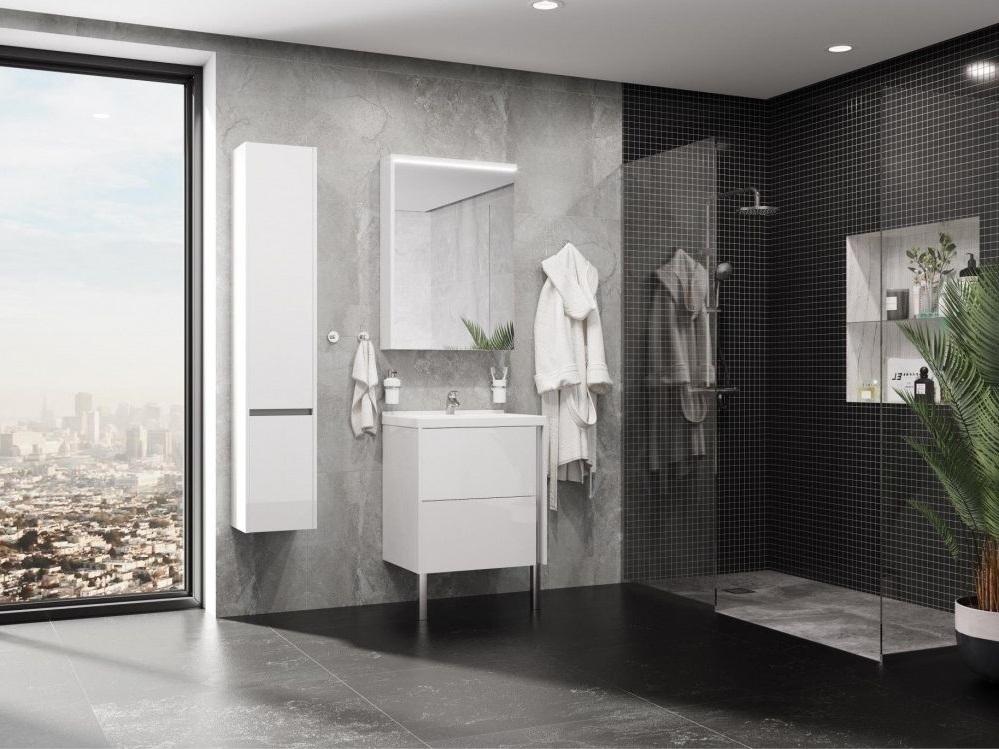Пенал подвесной Акватон Стоун 30 см 1A228403SX01L, петли с интегрированной системой плавного закрывания, цвет - белый глянец.