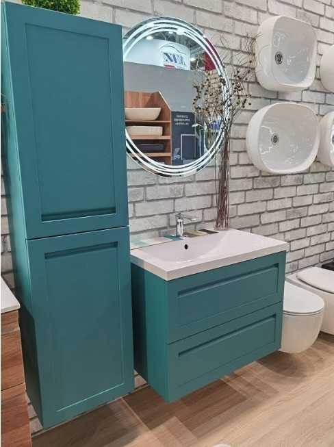 Пенал подвесной Art&Max Platino 40 см с двумя распашными дверцами, реверсивный, фурнитура Боярд с доводчиками, цвет - бирюзовый матовый.