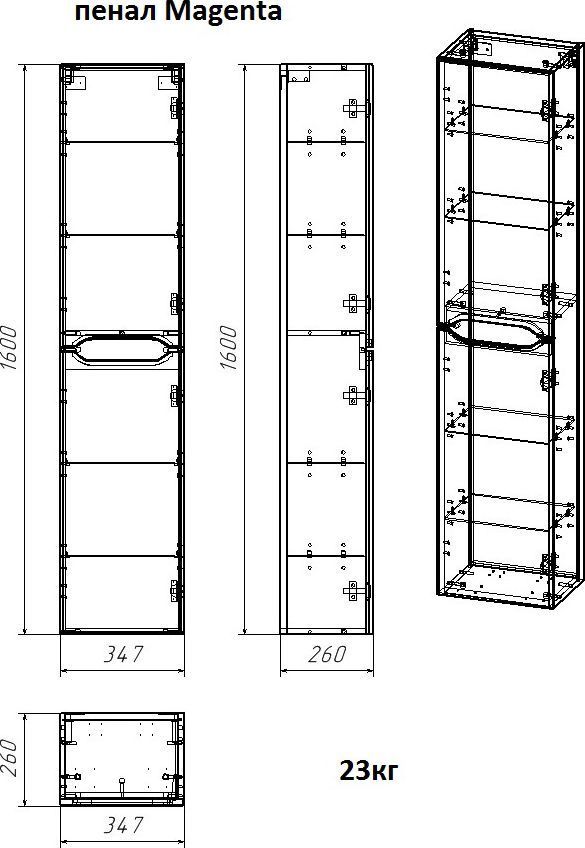 Пенал подвесной Azario Magenta 34 см, универсальный