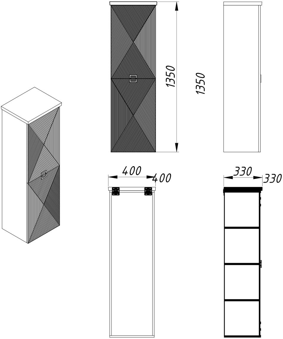 Пенал подвесной Azario Zena CS00096930, размер 400x330x1350, цвет белый глянцевый, ручка хром.