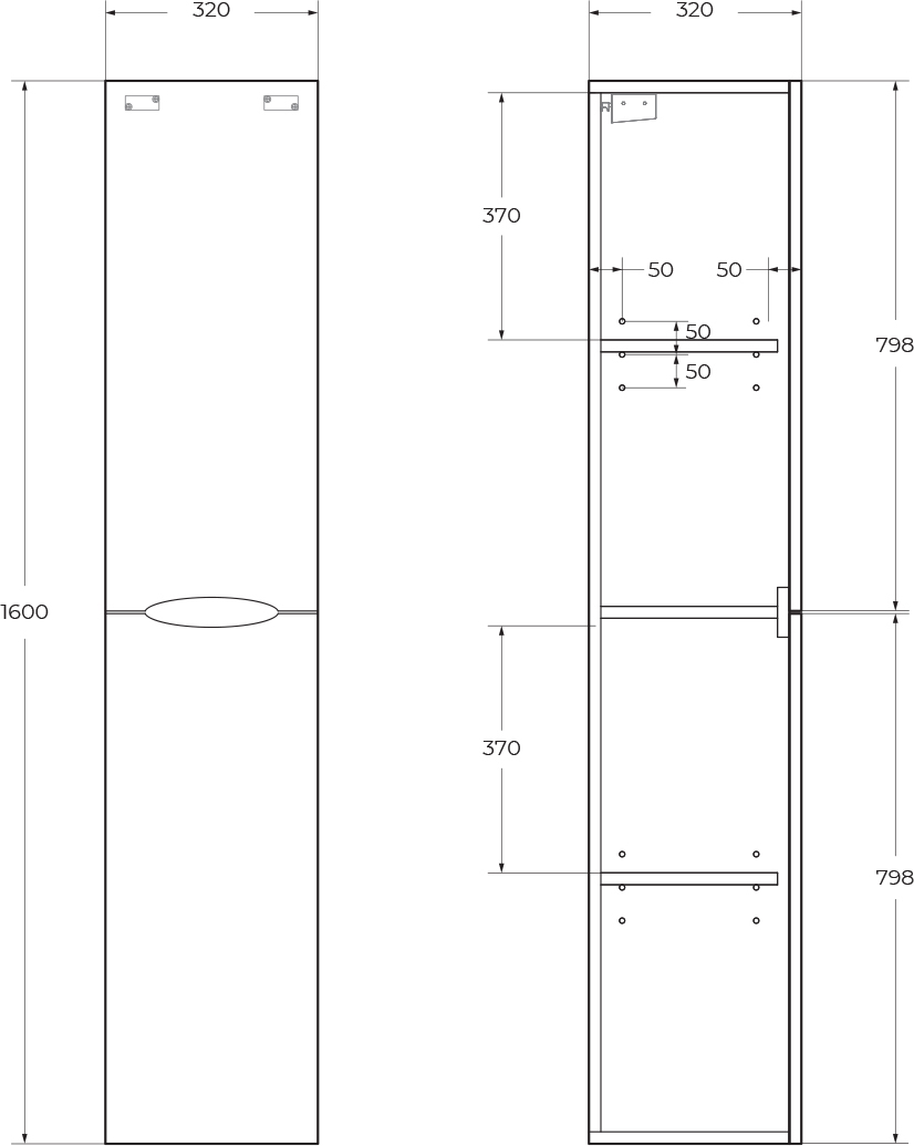 Пенал подвесной BelBagno ACQUA-1600-2A-SC-BL-P 32 см, универсальный, две распашные дверцы с врезными (фрезерованными) ручками в плоскости фасада, цвет Bianco Lucido.