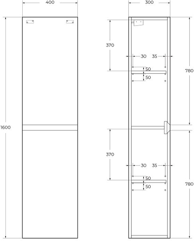 Пенал подвесной Cezares 40 см MOLVENO-1600-2A-SC-ANTR, антрацит