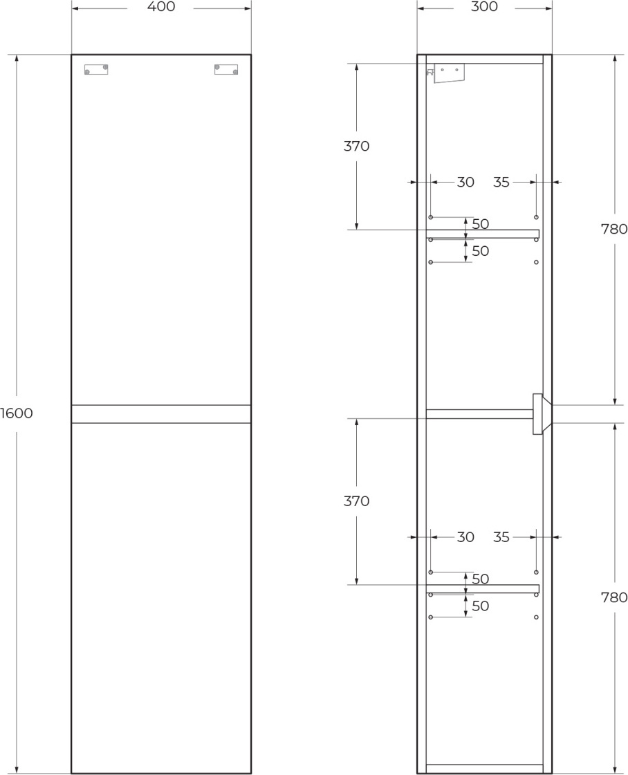 Пенал подвесной Cezares MOLVENO-1600-2A-SC-LB, размер 400x300x1600 мм, цвет legno bianco.