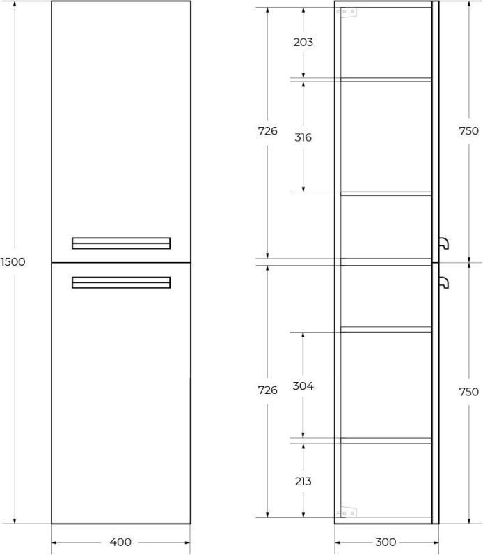 Характеристики пенал Cezares (ECO-1500-2A-SC-BO)