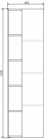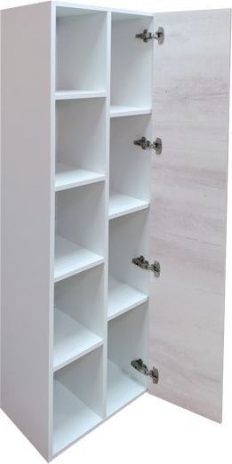 Подвесная шкаф-колонна с одной распашной дверью и пространством для открытого хранения. Створка оборудована петлями с системой плавного закрывания. За створкой 3 горизонтальные полки. Шкаф-колонна универсальна, может быть подвешена в правом и левом варианте.