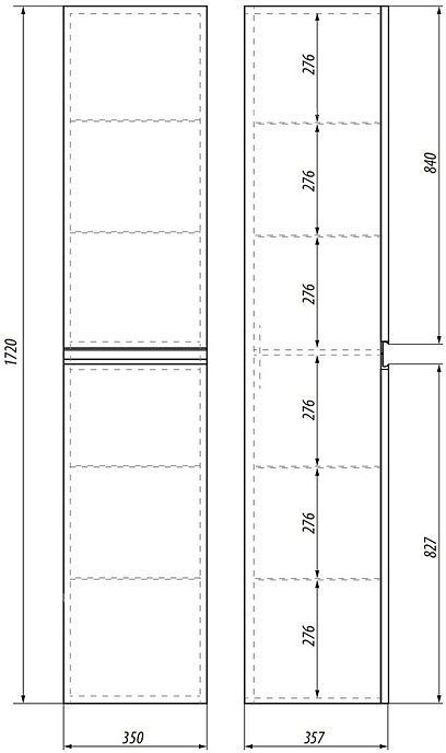 Пенал подвесной Dreja Grace 35 см 99.0907, универсальный, 2 дверцы, 4 стеклянные полки, цвет белый глянец.