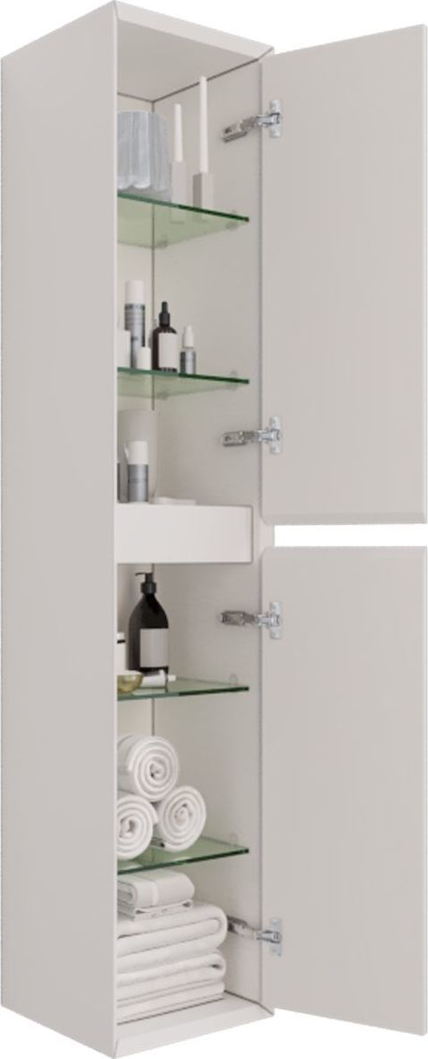 Пенал подвесной Dreja Insight 35 см 99.9201, универсальный, 2 дверцы, 4 стеклянные полки, цвет белый глянец.