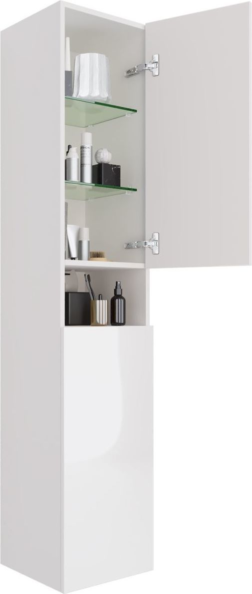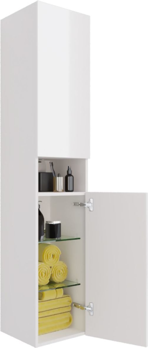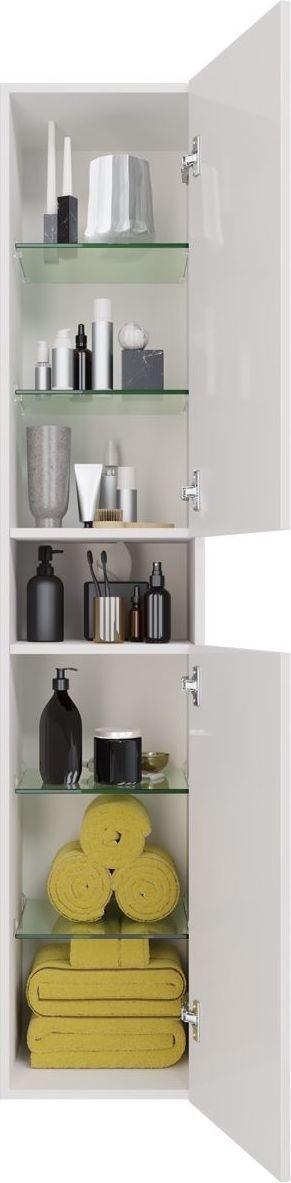 Пенал подвесной Dreja Perfecto 35 см 99.0809, универсальный, 2 дверцы, 4 стеклянные полки, цвет белый глянец.
