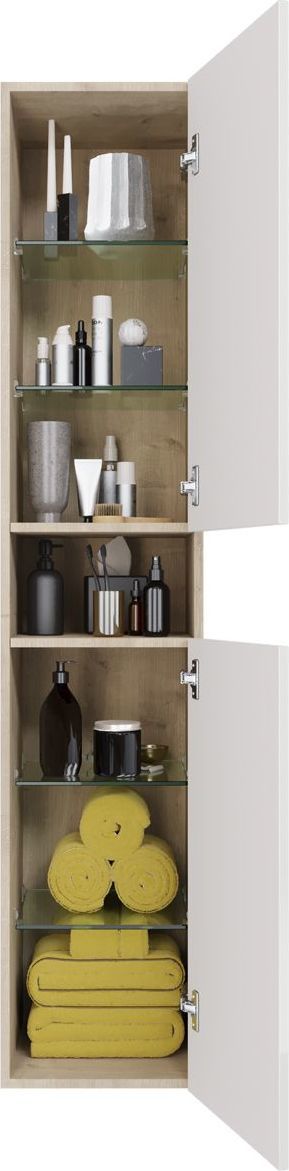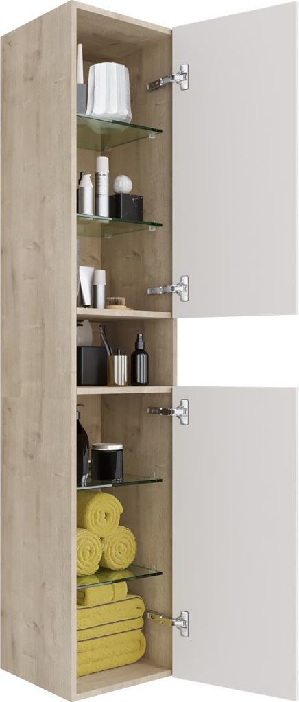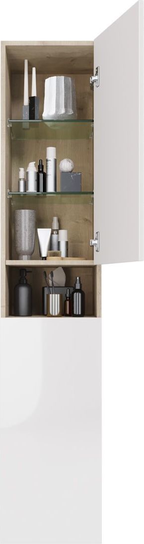 Пенал подвесной Dreja Perfecto 35 см 99.0814, универсальный, 2 дверцы, 4 стеклянные полки, цвет дуб эврика/белый глянец.