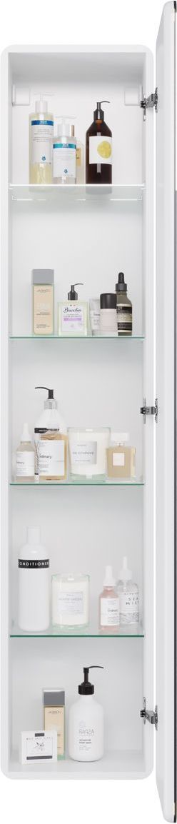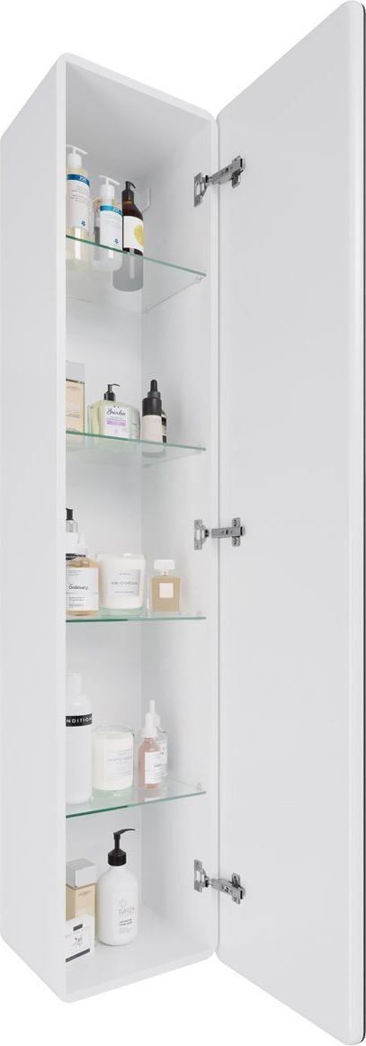 Пенал подвесной Dreja Point 40 см 99.9035, универсальный, 1 дверца, 4 стеклянные полки, сенсорный выключатель, LED-подсветка, цвет белый глянец.