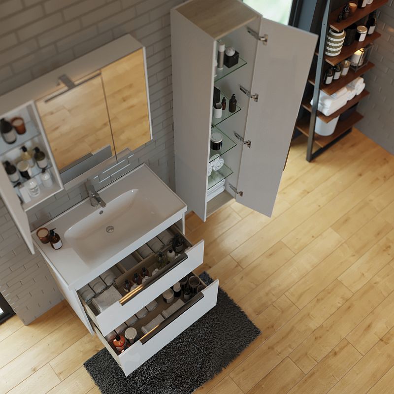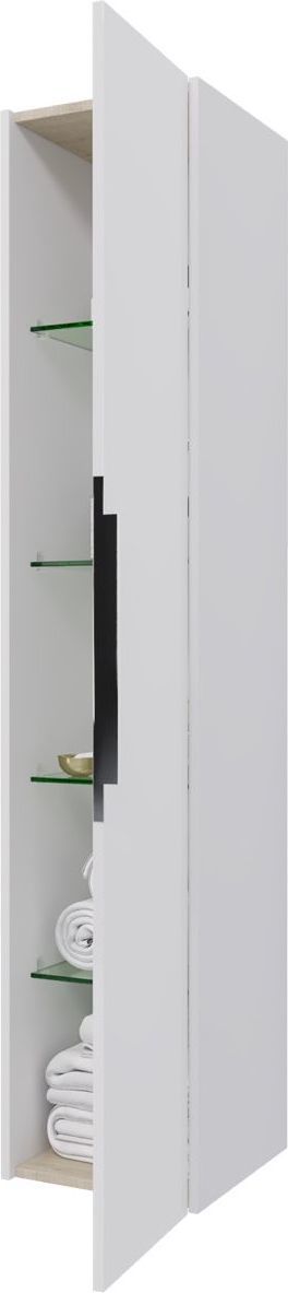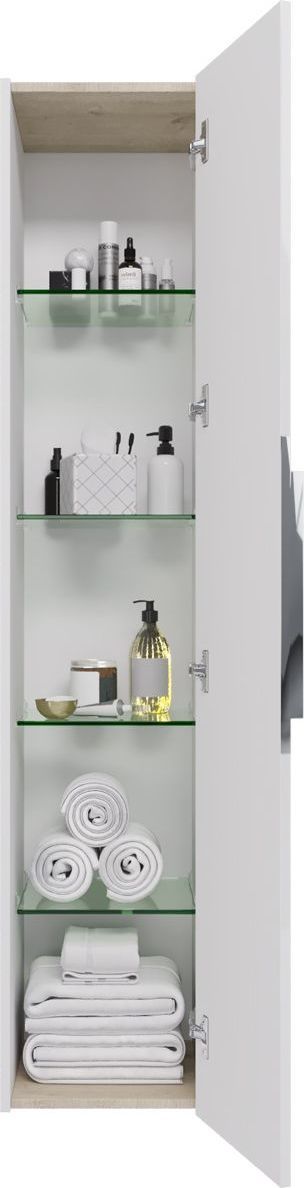 Пенал подвесной Dreja Prime 35 см 99.9303, универсальный, 1 дверца, 4 стеклянные полки, цвет белый глянец.