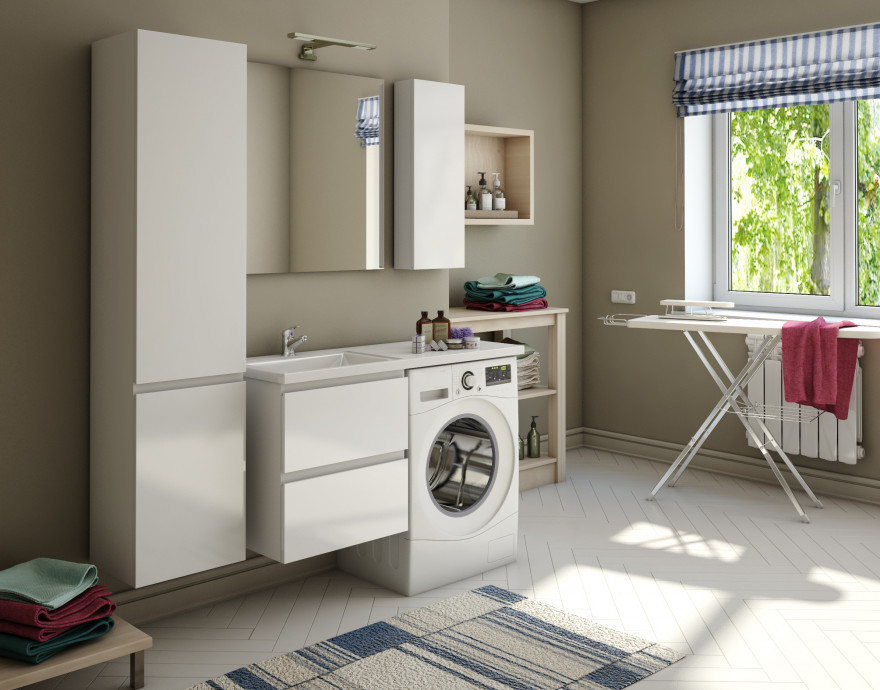 - Мебель выполнена из влагостойкого ЛДСП и качественного МДФ с использованием эмали RENNER (Италия).