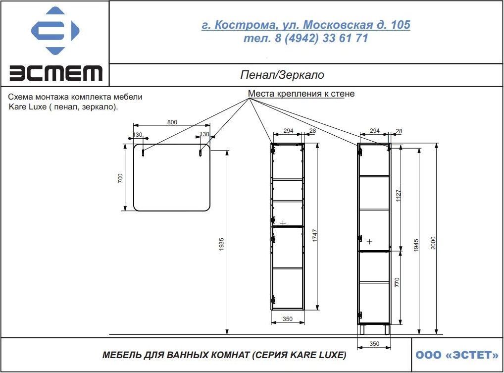 Пенал подвесной Эстет Kare Luxe 35 см R ФР-00006002