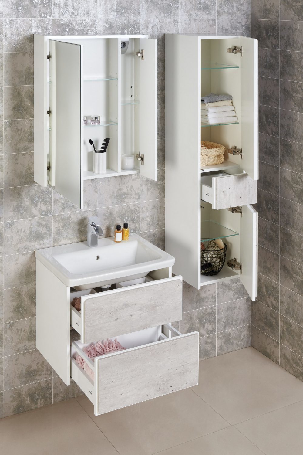 Пенал подвесной ROCA Ronda 32 см правый ZRU9303006, бетон/белый глянец