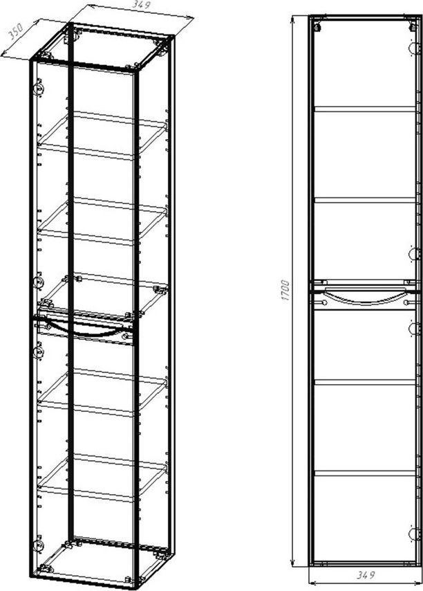 Пенал подвесной Vincea Mia 35 см VSC-2M170VO-L, система хранения: 2 дверцы, цвет - дуб винтаж.