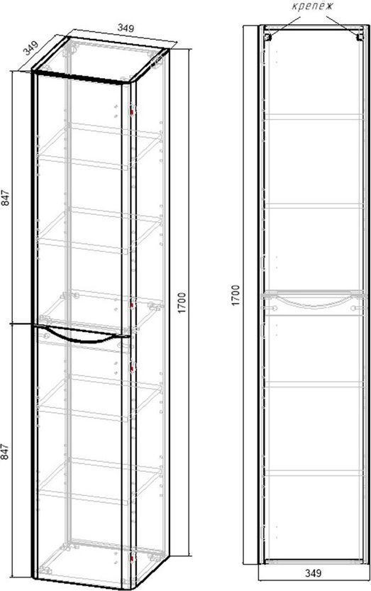 Пенал подвесной Vincea Paola 35 см VSC-2P170GW-L, система хранения: 2 дверцы, цвет - белый глянец.
