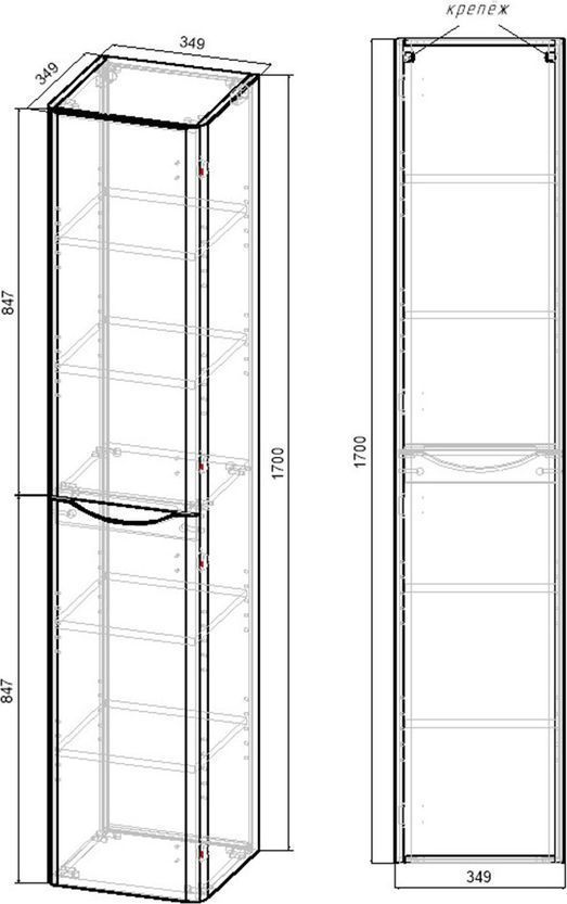 Пенал подвесной Vincea Paola 35 см VSC-2P170RW-R, система хранения: 2 дверцы, цвет - тёмное дерево.