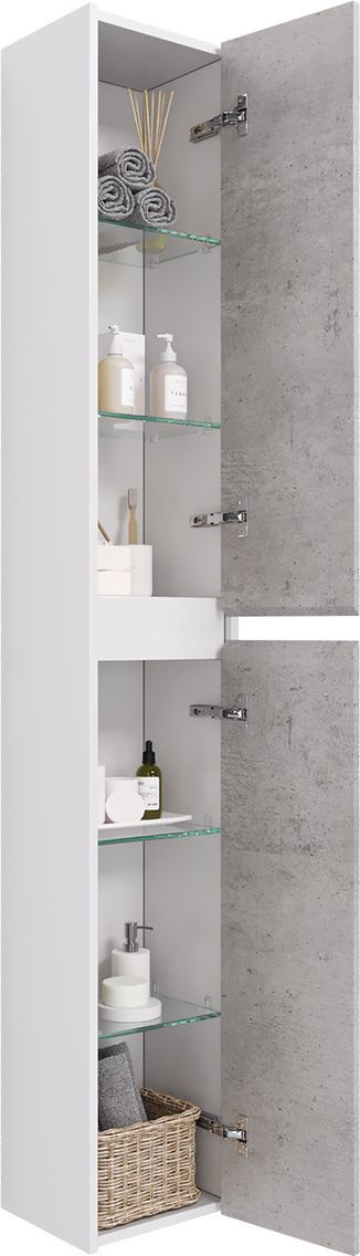 Пенал универсальный Dreja Slim 30 см 99.0505, цвет бетон/белый глянцевый.