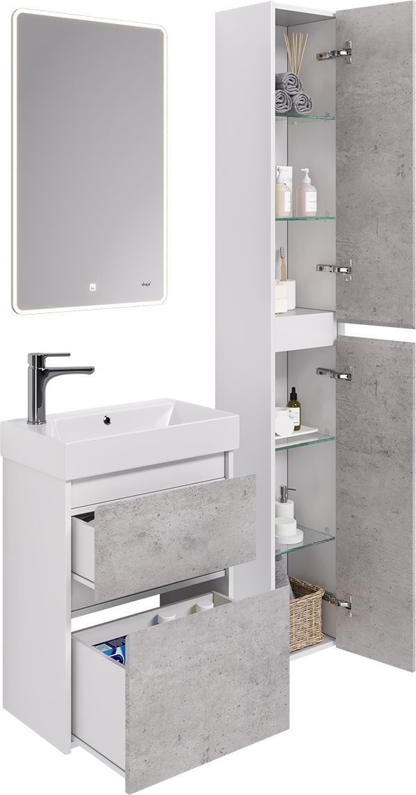 Пенал универсальный Dreja Slim 30 см 99.0505, бетон/белый глянцевый