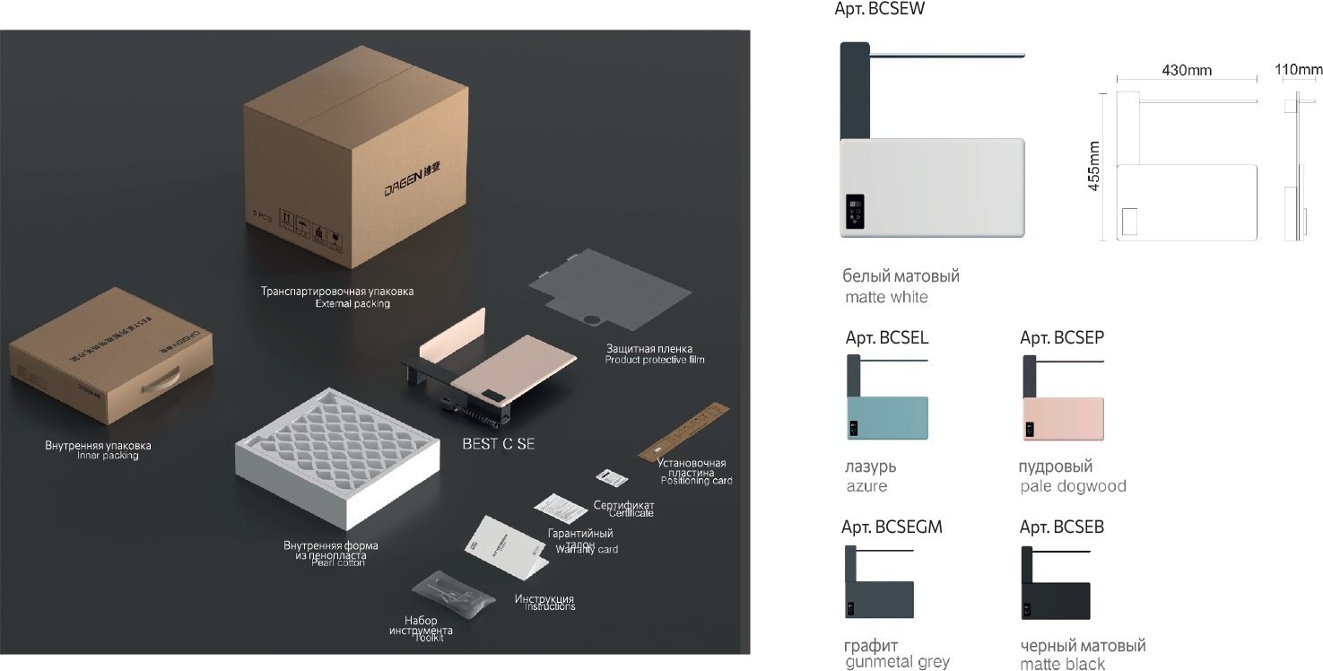 Первый в мире интеллектуальный полотенцесушитель Dagen Best 430x455 мм BCSEl (скрытое подключение) лазурь