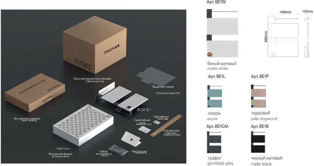 Первый в мире интеллектуальный полотенцесушитель Dagen Best BE1B, размер 430х665 мм, цвет чёрный матовый. Скрытое подключение.