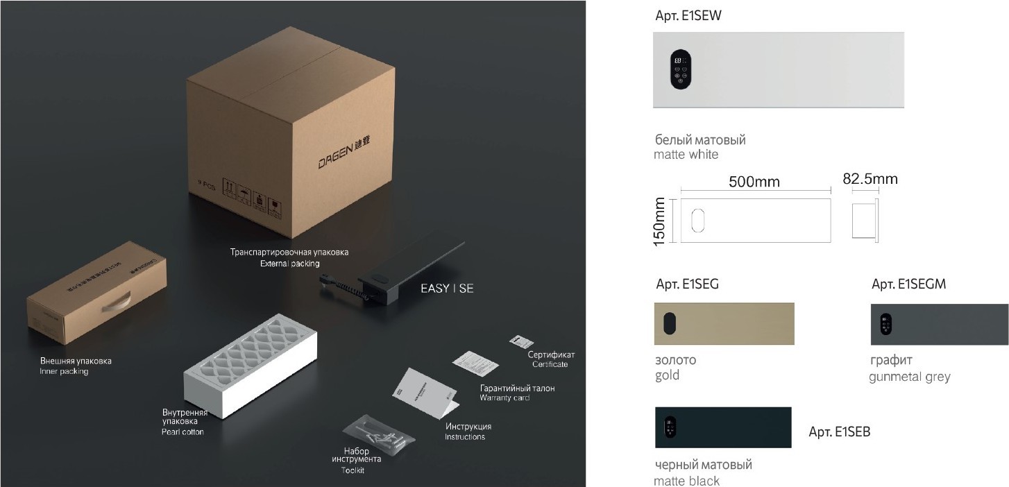Первый в мире интеллектуальный полотенцесушитель Dagen Easy 500x150 мм E1SEG (скрытое подключение) золото