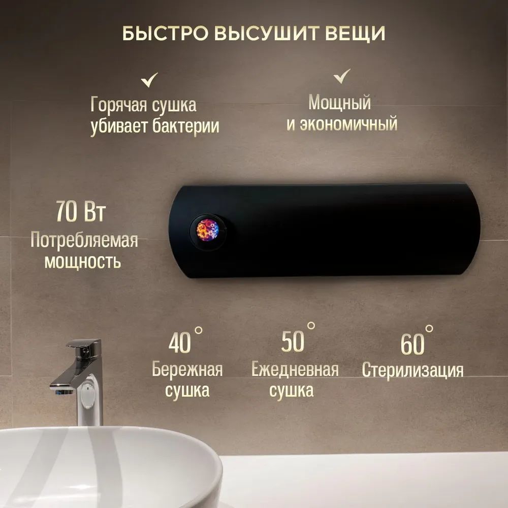 Первый в мире интеллектуальный полотенцесушитель Dagen One OSB, размер 470х145 мм, цвет чёрный матовый. Скрытое подключение.