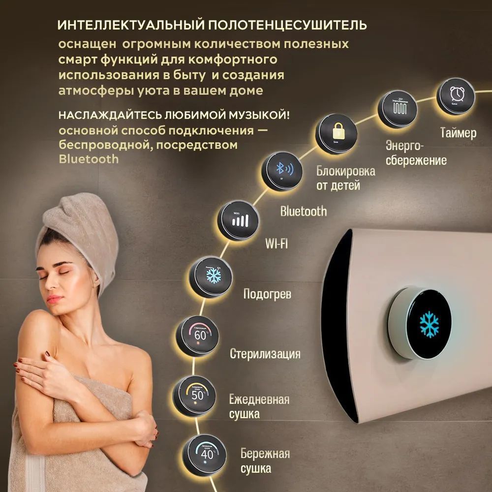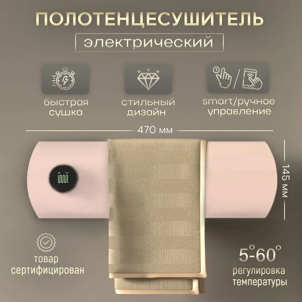 Первый в мире интеллектуальный полотенцесушитель Dagen One 470x145 мм OSP (скрытое подключение) пудровый