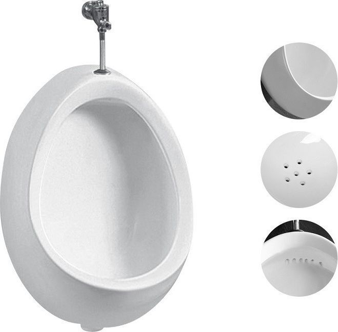 Писсуар подвесной CeramaLux Х545P с кнопочным механизмом смыва, слив в стену, цвет белый.