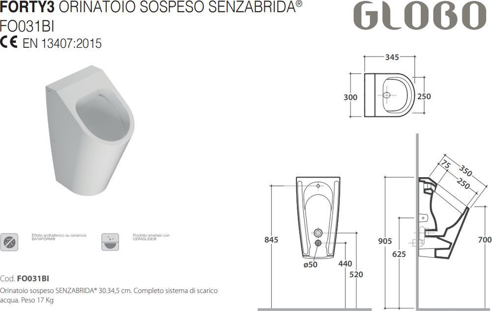Описание писсуар Globo FO031BI