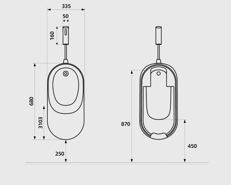 Писсуар подвесной SantiLine SL-6008 с внешним подключением, цвет белый.