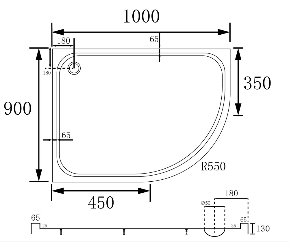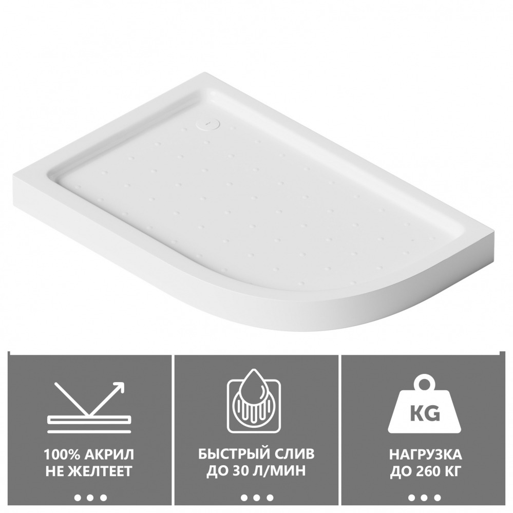 Душевой поддон Abber AD3E109 L, металлические ножки, каркас и сифон в комплекте, размер 1000х900х130 мм, левосторонняя, материал акрил. Цвет белый.