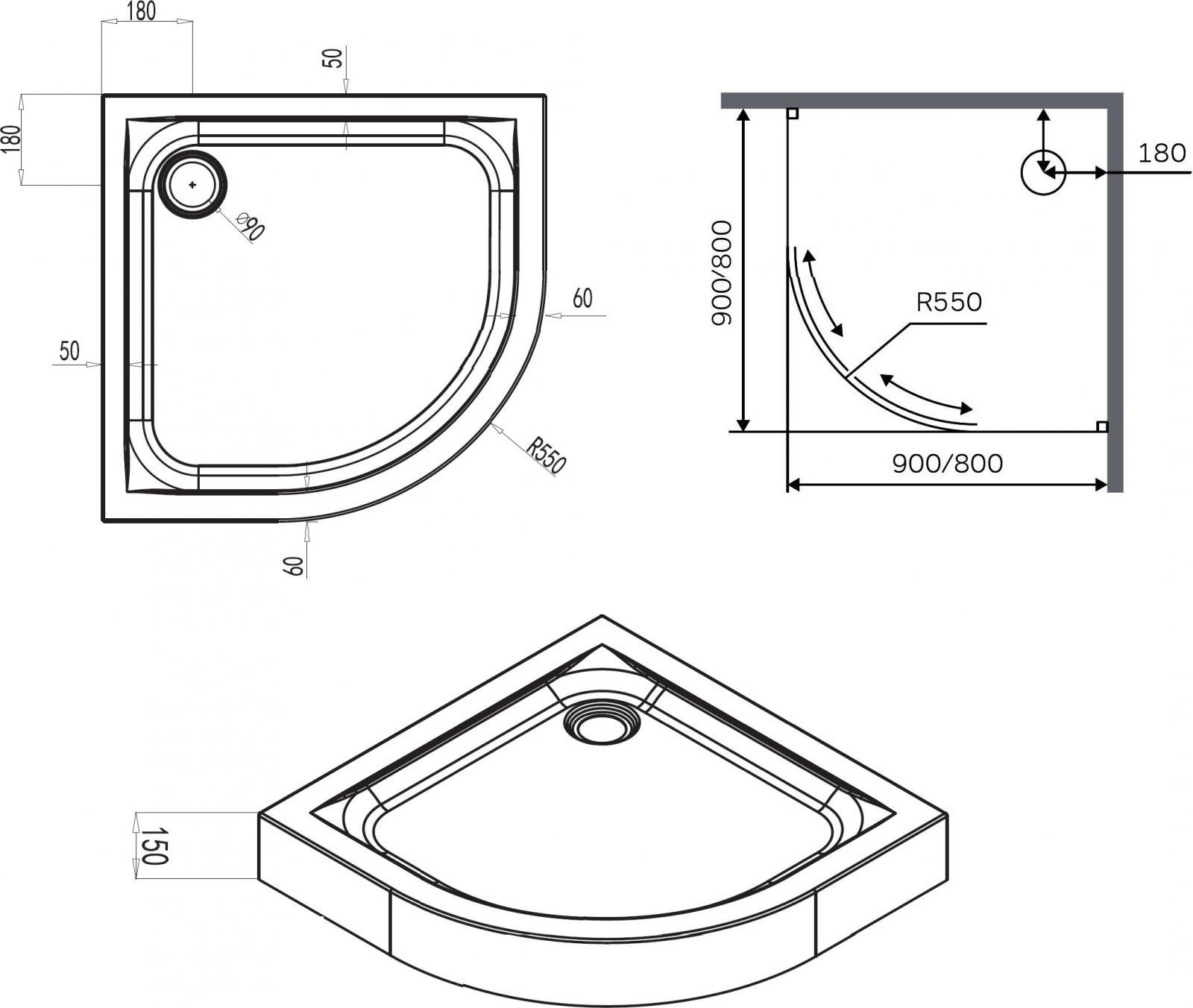 Акриловый поддон идеально гладкая поверхность и белоснежный цвет. Съемный экран. Монтаж осуществляется на каркасе (входит в комплект) сливное устройство. Поддон совместим с душевыми ограждениями - артикулы W88G-205-090BT64 W88G-205-090MT64. Приобретаются отдельно.
