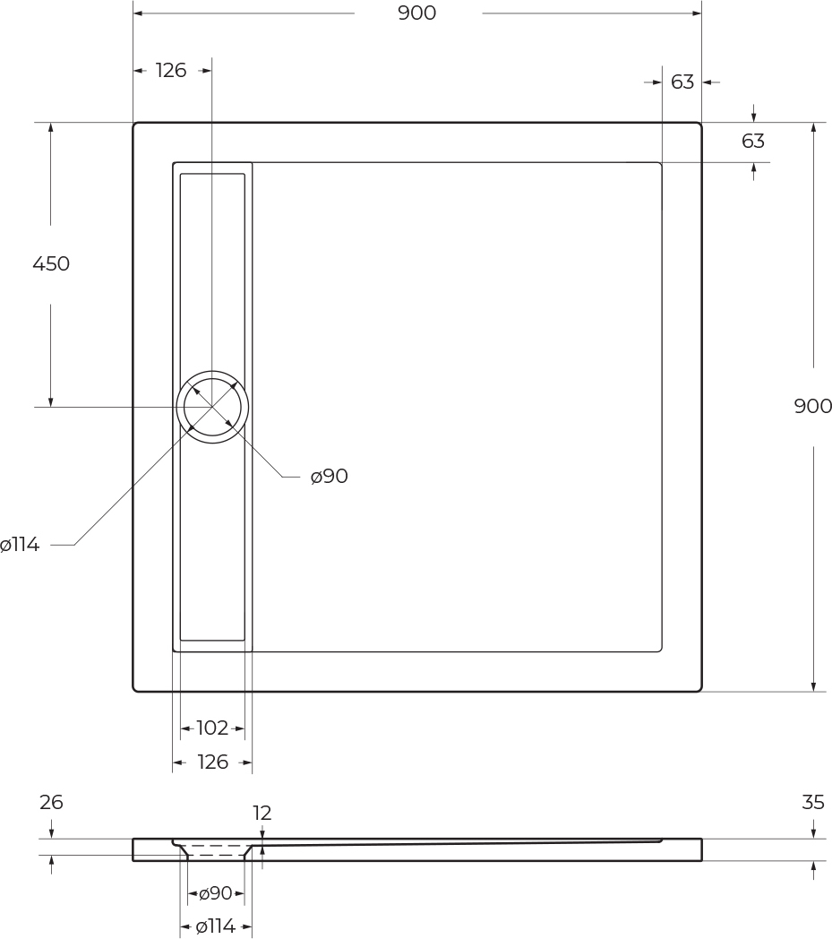 Поддон акриловый BelBagno 90х90 см TRAY-BB-DUE-A-90-4-W0, высота 35 мм, цвет белый. Сифон приобретается отдельно.