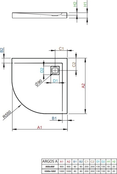 Душевой поддон Radaway Argos A 1000*1000*55 мм. Цвет - белый, материал - акрил. Отверстие под сифон - 90 мм.