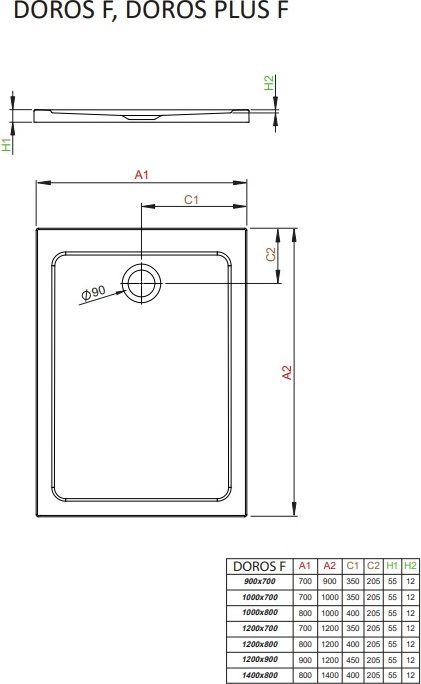Душевой поддон Radaway Doros F 1400*800*55 мм. Цвет - белый, материал - акрил. Отверстие под сифон - 90 мм.