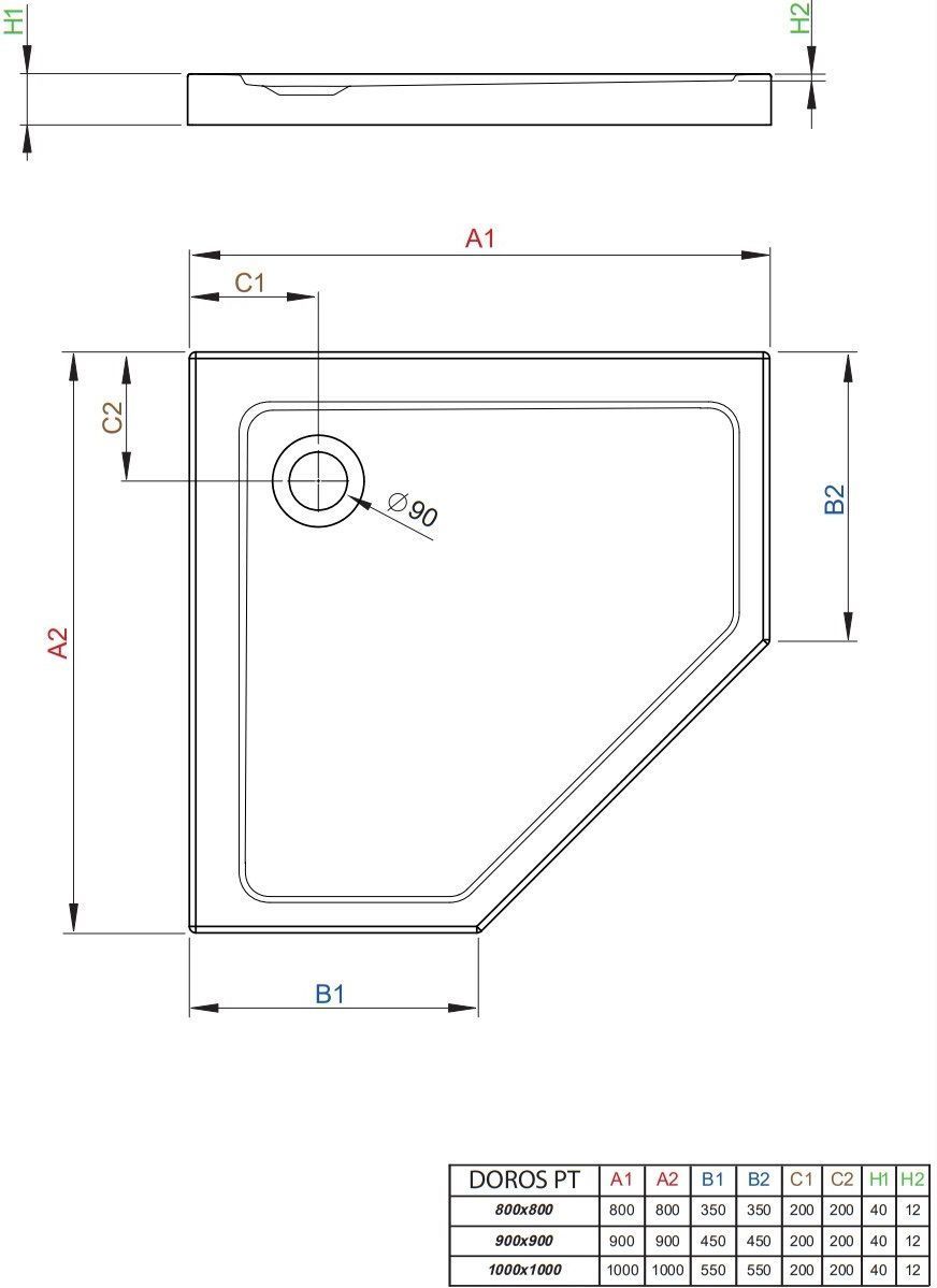 Душевой поддон Radaway Doros Plus PT 1000x1000x50 мм. Цвет - белый, материал - акрил. Отверстие под сифон - 90 мм.