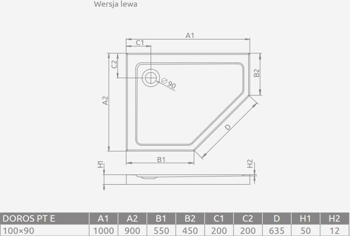 Поддон акриловый Radaway Doros PT E 1000х900х50 мм. Цвет - белый, материал - акрил. Отверстие под сифон - 90 мм.