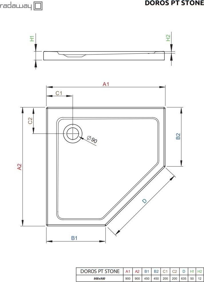 Характеристики Поддон Radaway (SDRPT9090-01-04S)