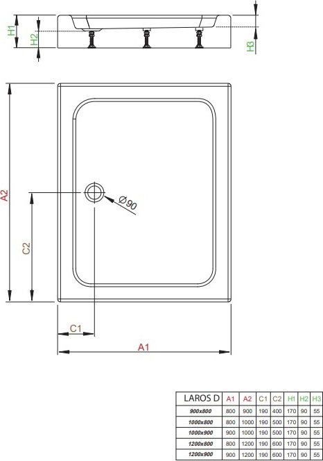- Сливное отверстие Ø 90 мм.