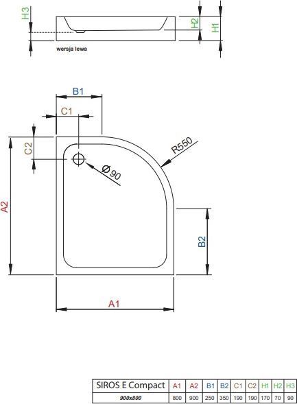 Душевой поддон Radaway Siros E 900х800х170 мм. Цвет - белый, материал - акрил. Отверстие под сифон - 90 мм.