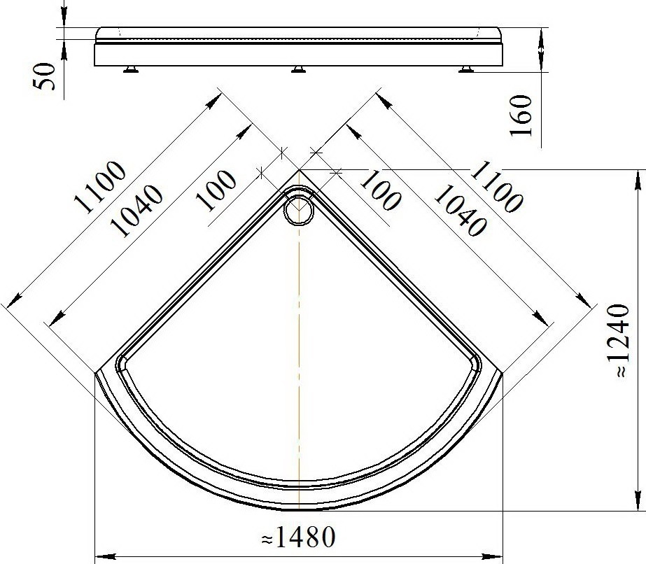 Поддон акриловый Радомир Найт 1100х1100х160 мм. Цвет - белый, материал - акрил. Отверстие под сифон - 60 мм. Каркас и сифон в комплекте.
