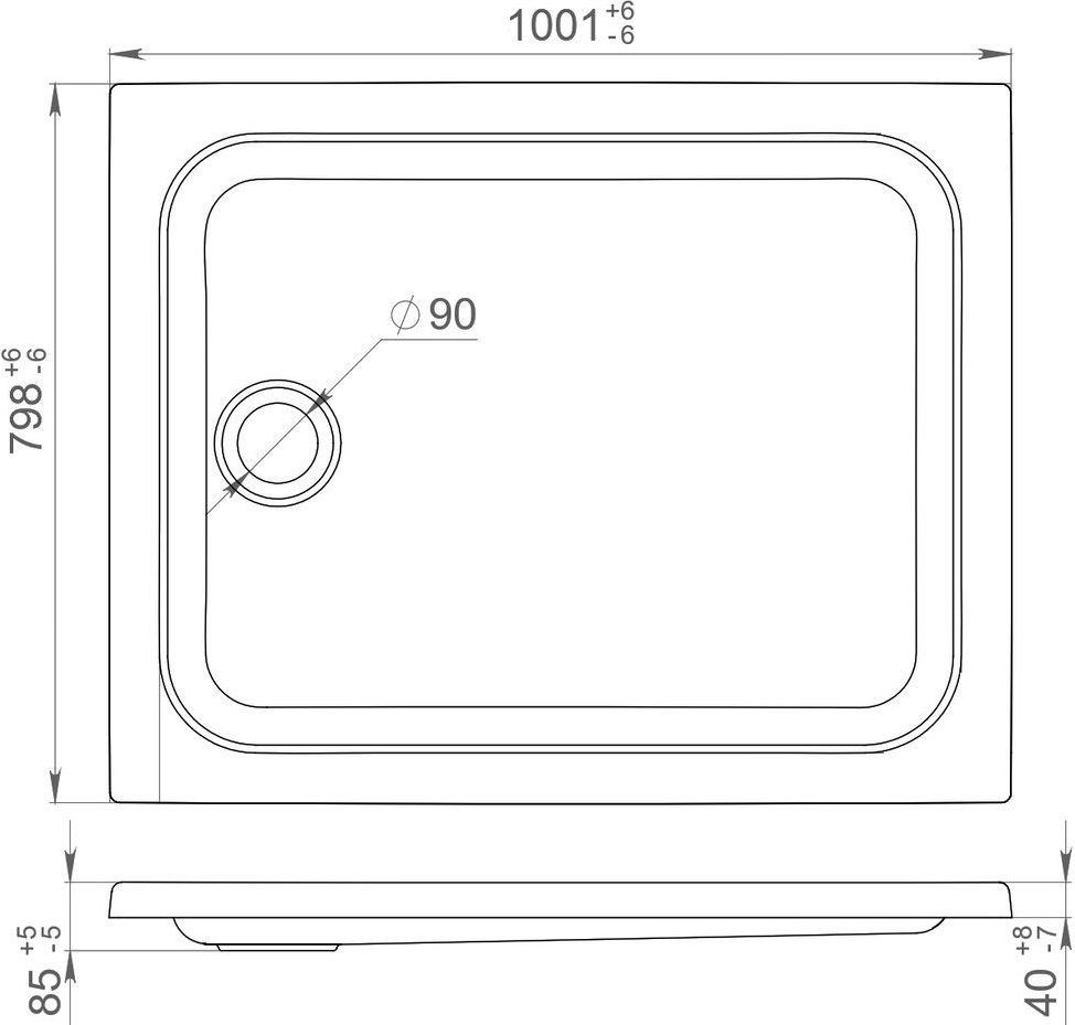 Душевой поддон Тритон, размер 1000х800х85 мм, диаметр слива 90 мм, материал акрил, каркас и панель в комплекте, цвет белый.