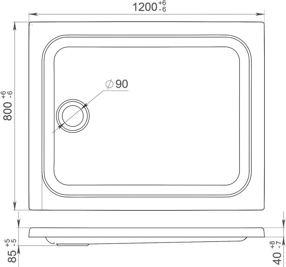 Душевой поддон Тритон, размер 1200х800х85 мм, диаметр слива 90 мм, материал акрил, каркас и панель в комплекте, цвет белый.
