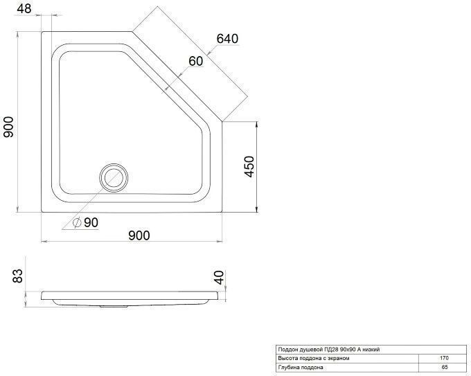 Душевой поддон Тритон, размер 900х900х83 мм, диаметр слива 90 мм, материал акрил, каркас в комплекте, цвет белый.