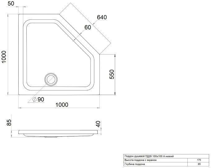 Душевой поддон Тритон, размер 1000х1000х83 мм, диаметр слива 90 мм, материал акрил, каркас в комплекте, цвет белый.